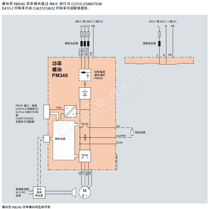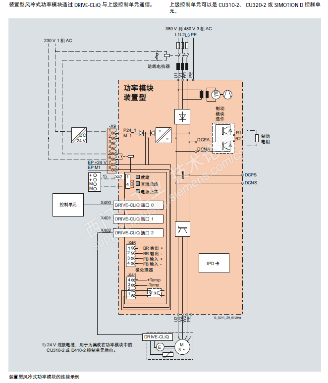 小张同学在这之前只接触过模块型功率模块,因为模块型 PM340 功率模块是通过 PM-IF 接口与 CU310-2控制单元或 CUA31/CUA32 控制单元适配器通信。对于装置型风冷式功率模块是需要通过 DRIVE-CLiQ 与上级控制单元通信的场景没有经验。下图展示了两种功率模块的区别: