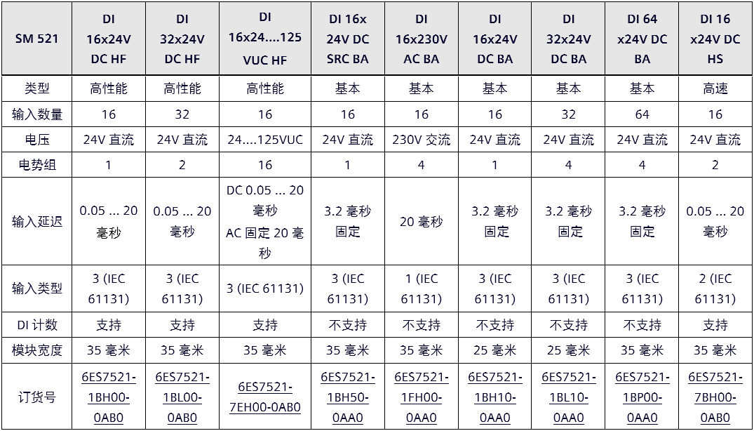 另外,当前的 S7-1500 输入模块一览如下表所示: