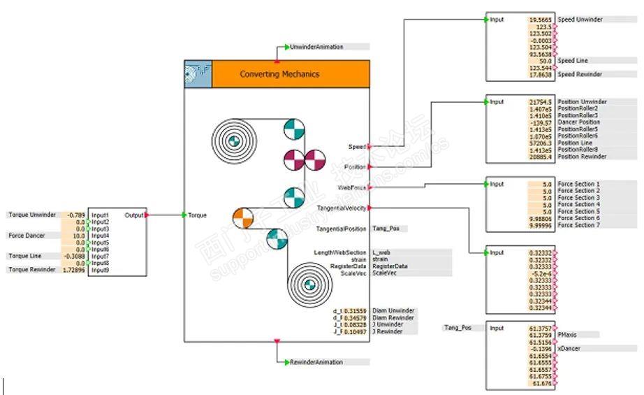 SIMIT 仿真模型可以用于连续收放卷过程的虚拟调试和仿真。此次更新的应用示例允许模拟加工机器的连续材料处理过程。以便使用 PLCSIM Advanced 和 SIMIT 虚拟调试 PLC 程序。可以使用所描述的模拟组件对卷绕机、驱动轴、导辊、跳舞辊等机械和过程元素进行建模。除此之外,还支持在虚拟环境中测试和验证收放卷的张力控制。