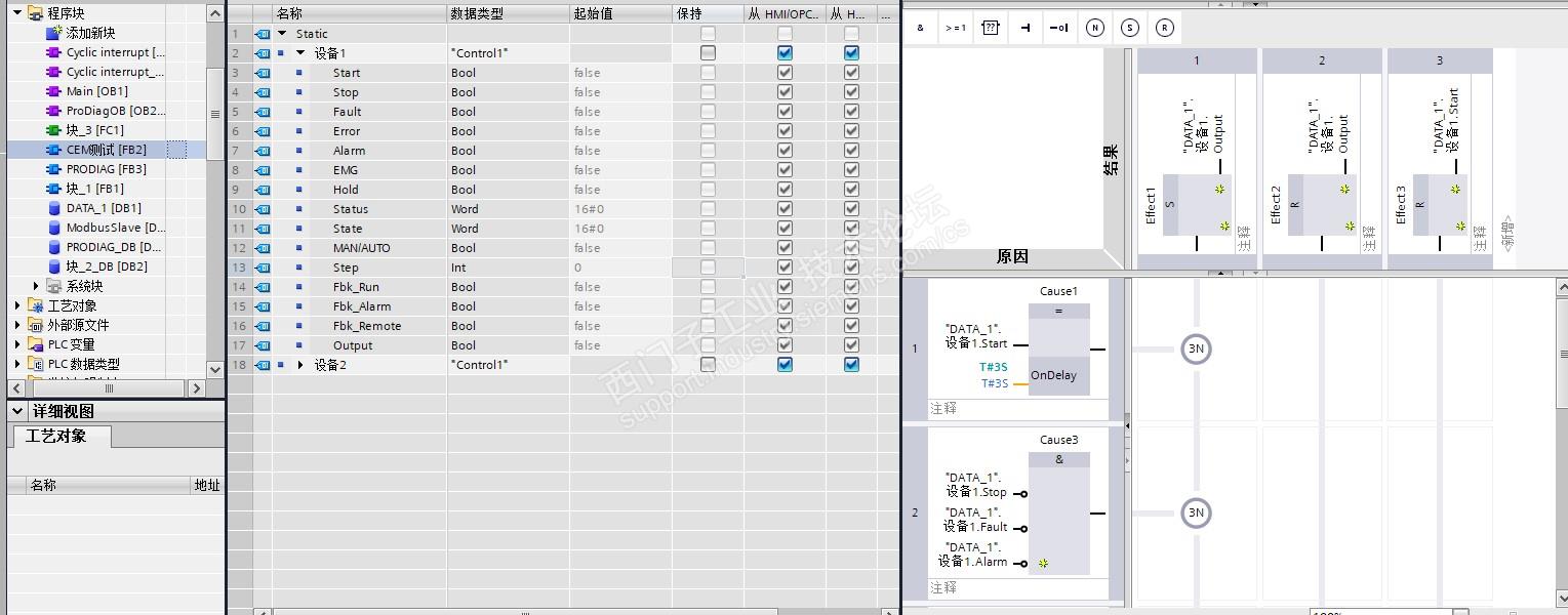 总之,从业这些年来,使用西门子产品使我获益良多,在我心中,在电气自动化领域只有西门子是唯一的大品牌,其它品牌统一归类为“其它”。下面是CEM的测试仿真截图。附件为测试程序,一个特简单的小程序。