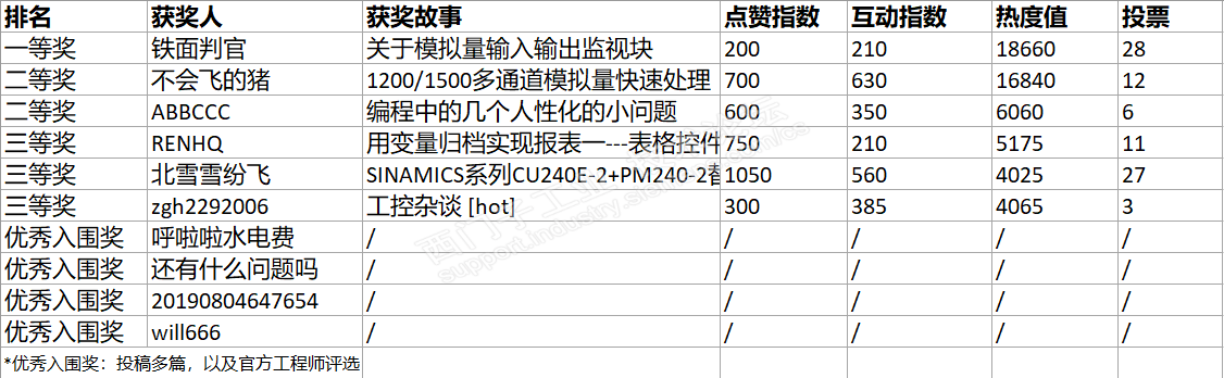 内行说内行话 征文活动圆满结束,感谢大家对西门子中国的信任与支持,也感谢大家对工业支持中心网站的支持。