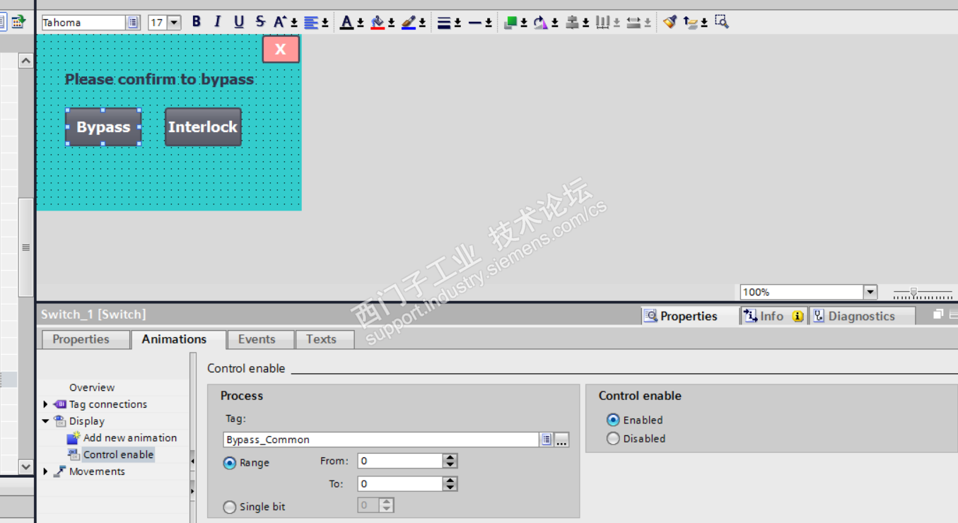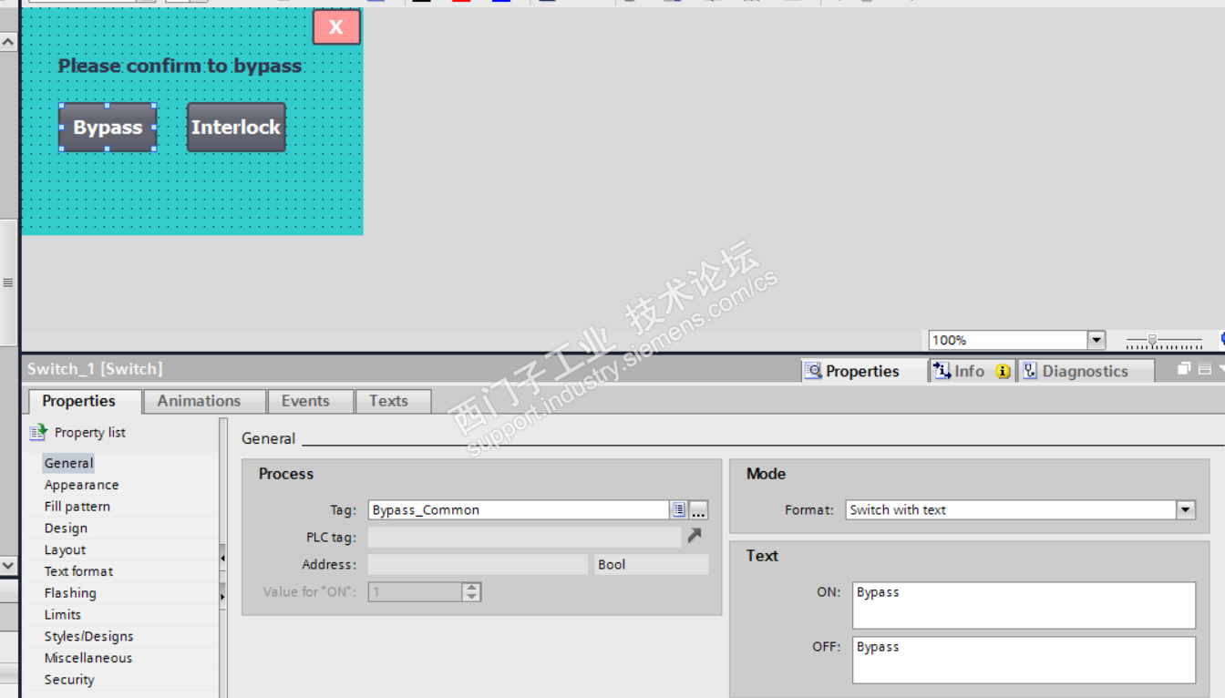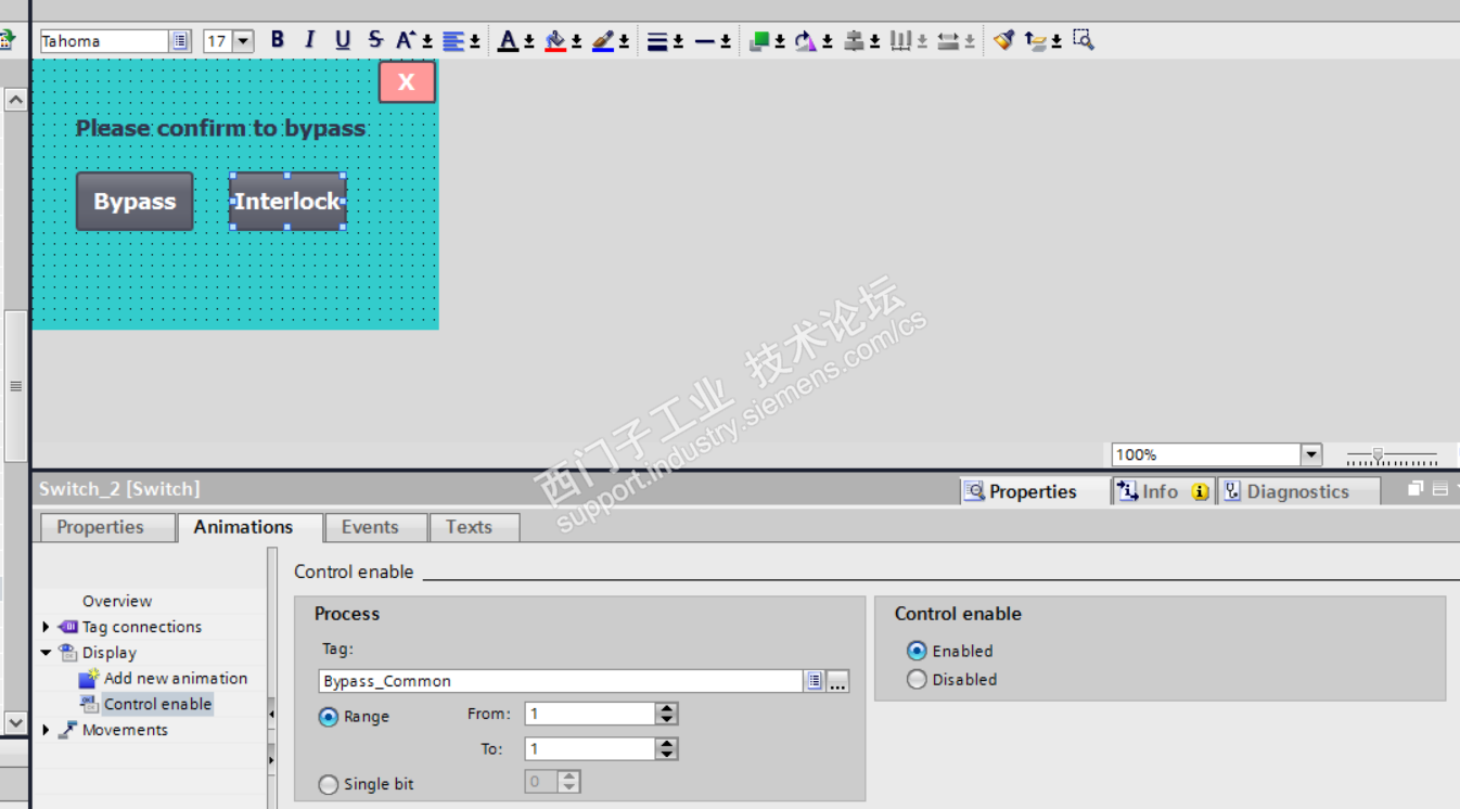 2).在弹窗中添加动态属性和添加“Bypass/Interlock”开关