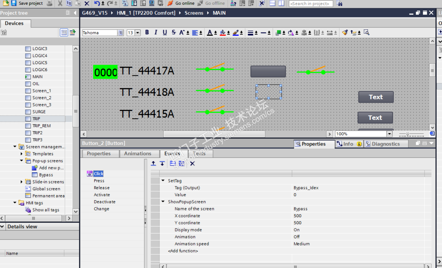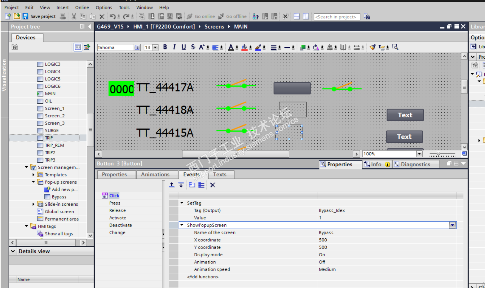 之后可以建立面板或直接在弹出窗口指针变量来优化HMI,替代之前多少个联锁切除就做多少个弹窗或者叠加多少层的隐藏窗口