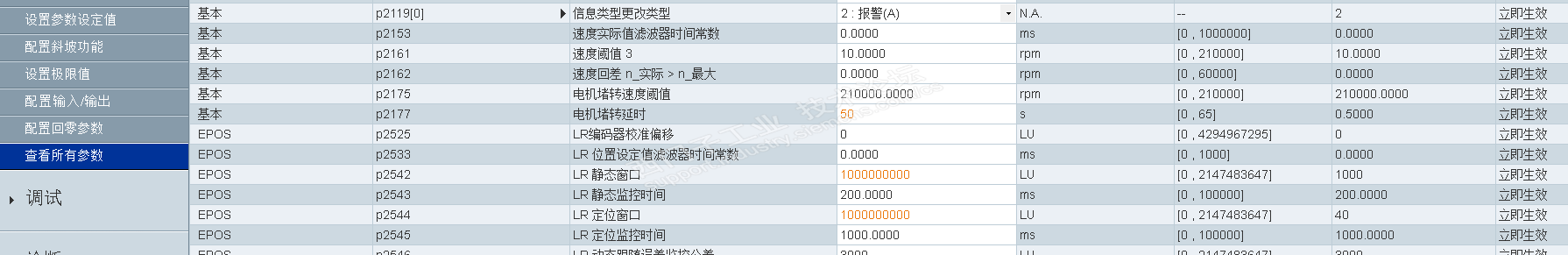 位置控制模式下,降低扭矩限制,必然会产生定位环报警,因此,必须修改相应的报警参数: