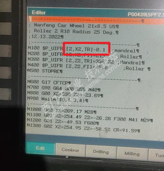 同事操作时一个“不经意”的输入错误,造成了系统的报警,这个我在回复电话中一直强调,既然系统报警12080# 通道2的N100步错误一定是存在的,图示也验证了我的判断。当N100 $P_UIFR [2,X2,TR] -0.1 ;X轴的偏差,一个非常明显的输入方式错误映入眼帘时,我马上把具体位置标注好,发给了公司同事,让他在这个偏差赋值中加入一个“等于”的符号。这样,N100 $P_UIFR [2,X2,TR] = -0.1 ;这样的语法才是正确的,问题找到,在回复问题原因过程中也让同事准备安装模具,准备生产了。几个小时过去,看到同事发上来的产能报告,足已经说明那边已经在正常生产了,此,一个简单的NCK编程错误排障过程,让同行在类似排障时可以做的参考。