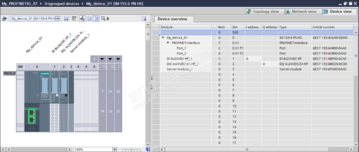 此TIA Portal项目中的ET200SP的硬件组态中的每个Slot: 0~3中的module与上述报文中的Slot: 0x0~0x3号对应,而每个槽的子槽Sublot:0x1为过程数据(输入或输出)的实际接口,接口模块的通信接口X1和两个端口(X1P1/X1P2)的Sublot号分别为0x8000,0x8001,0x8002。