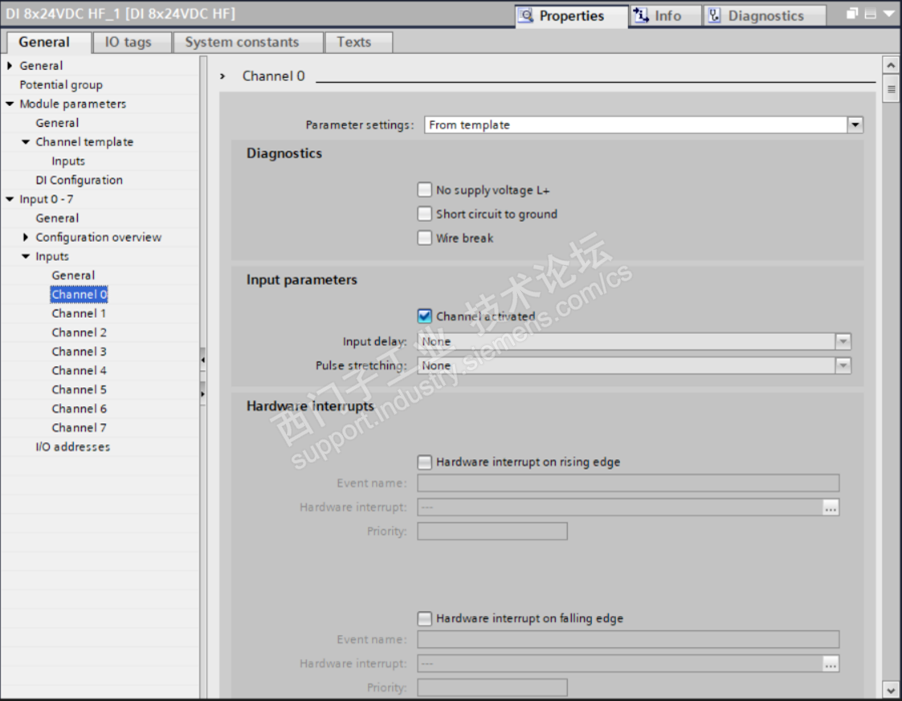 这些参数实际上就是按照硬件组态或者工艺要求组态IO模块的参数,按照8x24VDC DI模块为例,诸如:断线诊断,上升沿硬件中断等参数。