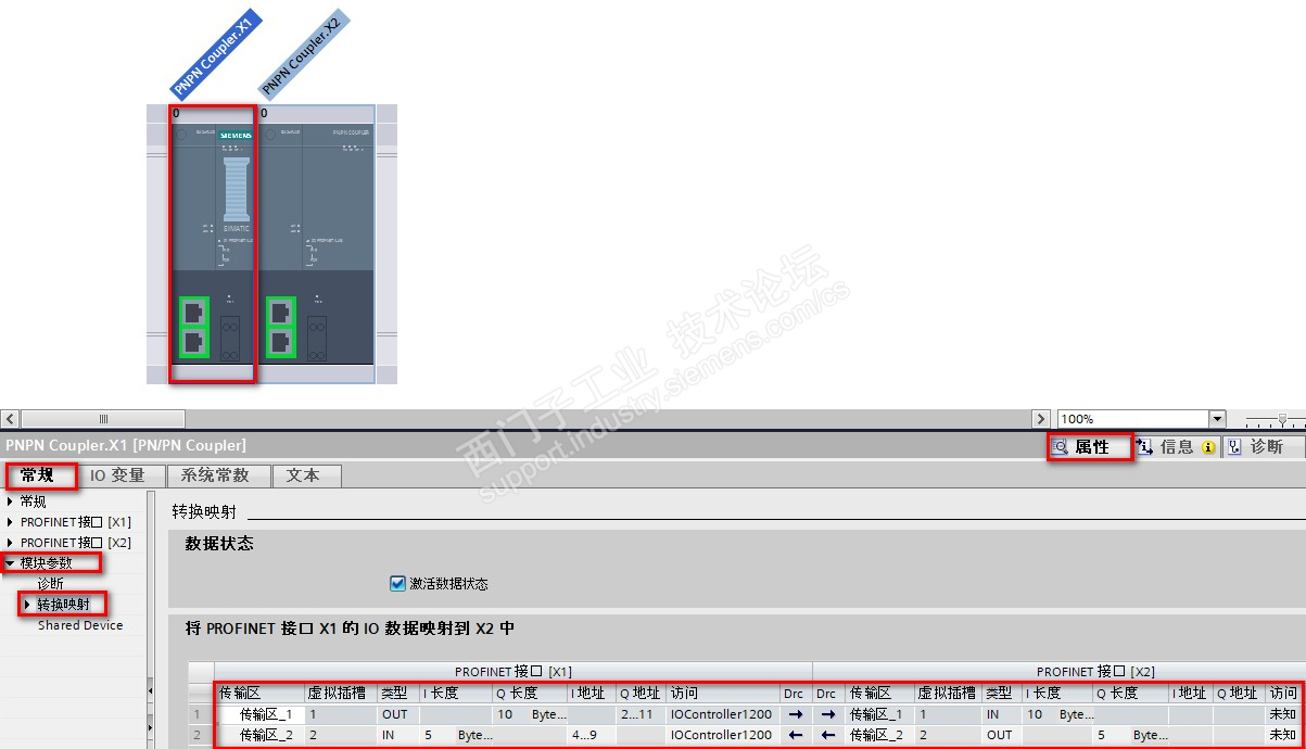 PN/PN Coupler应用:当PLC位于不同子网(如S7-1200在192.168.0.0/24,S7-1500在192.168.2.0/24)时,通过Coupler的X1/X2接口映射数据。配置要点:导出GSD文件确保双方项目兼容,传输区字节对齐(如S7-1200输出QB2-QB11映射至S7-1500输入IB100-IB109)