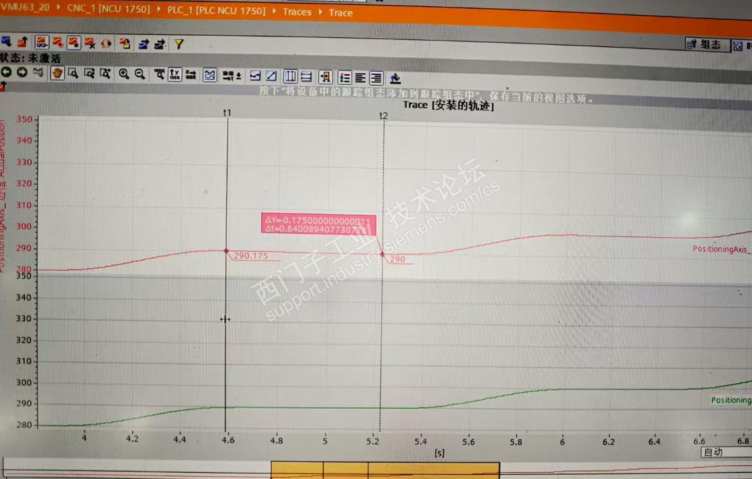 这个问题是由于工艺组组态中的一个参数设置与驱动设置的不一致导致的定位过冲问题,很废了些时间才找出了问题原因所在。