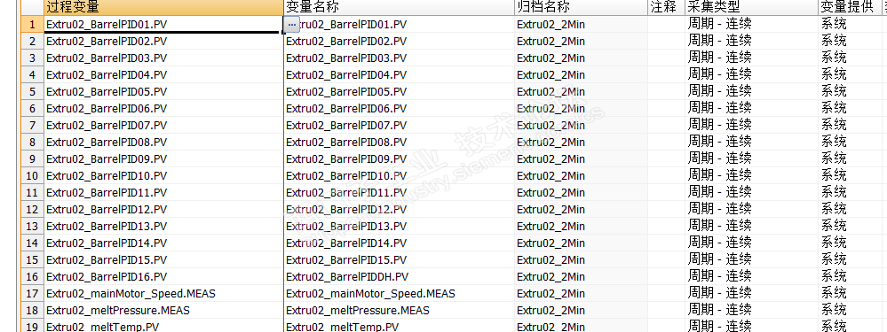 3)所有归档变量均采用相同的配置(采集类型:周期-连续;采集周期:1秒)