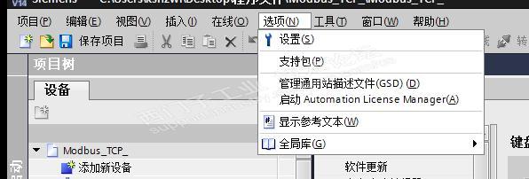 1,打开博图软件以后会看到窗口工具栏有一个“”选项“”的工具栏,点击以后有一个下拉菜单 如下图片,打开第一个选项(设置)