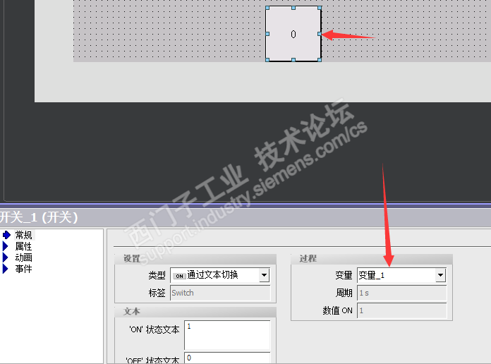 然后在画面上面添加一个开关,变量就是刚才添加的变量Q0.0