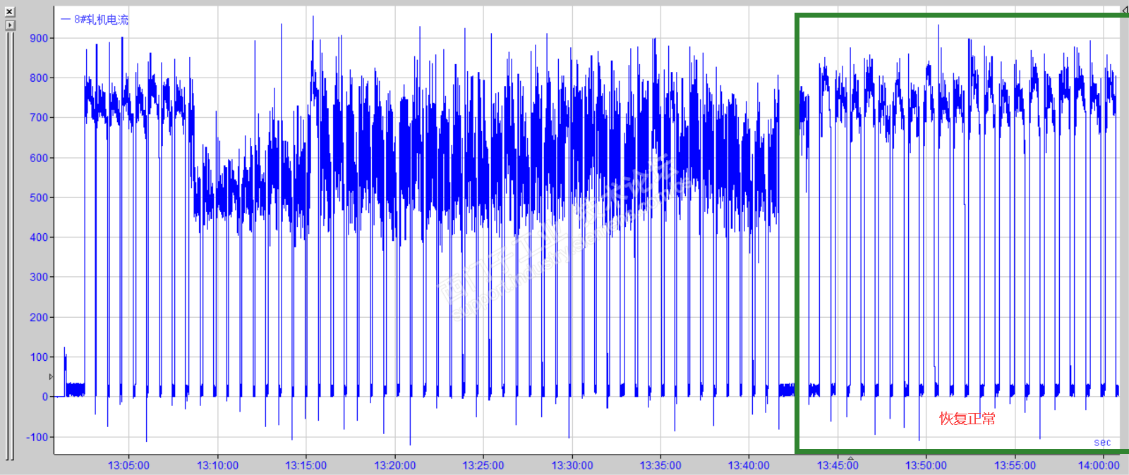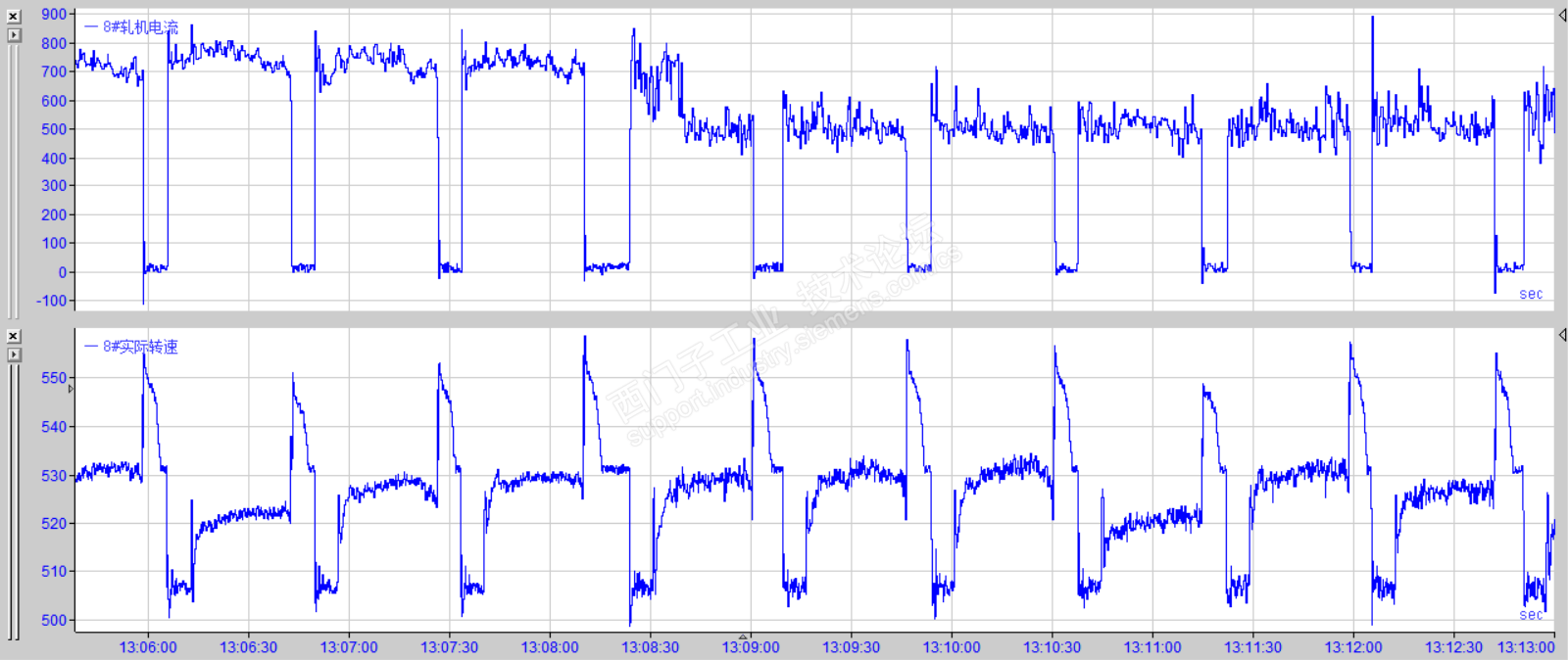 2、这种情形,首先排除了转速波动引起电流波动的情况;然后是现场工况:同一炉的钢坯,没有冷热坯混装,加热温度也符合轧制要求,排除了钢坯的问题;