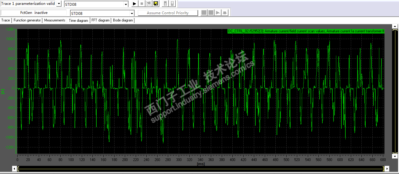 6、马上通过STARTER软件的trace调出该参数并监测实时数据波形:发现电流互感器II的波形明显异常。