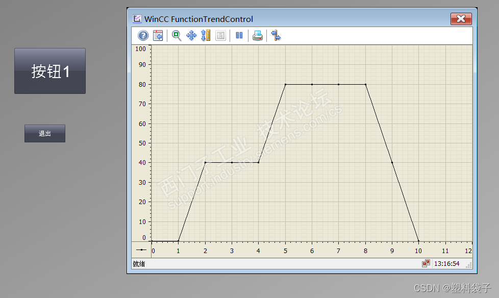 近期在学习WINCC的应用,师傅在网上找了个实例让我自己试着弄一下看能不能达到效果,原文在下面,经过尝试我发现有很多脚本在7.5版本中已经更改,所以针对趋势曲线的练习,将更新后的脚本及整个效果分享出来,供大家参考。