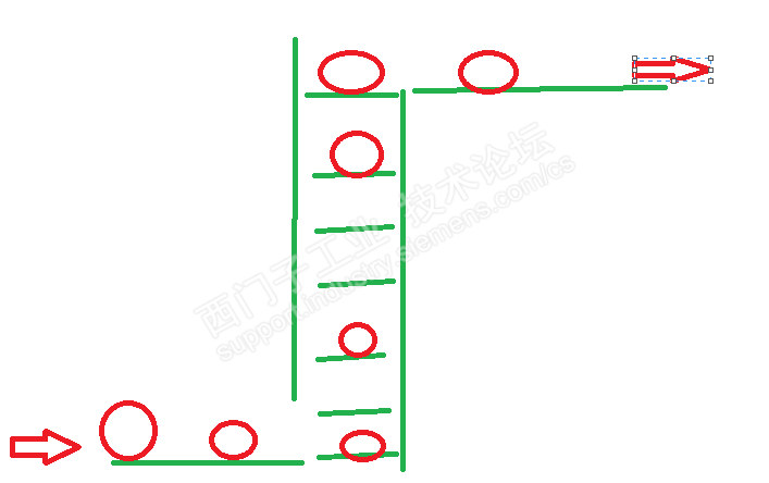 现场使用的是 S7 1200 系列的 PLC ,现在现场工人需要知道这个设备内井道里有多少物料的需求? 如下图有一个简单的示意图: