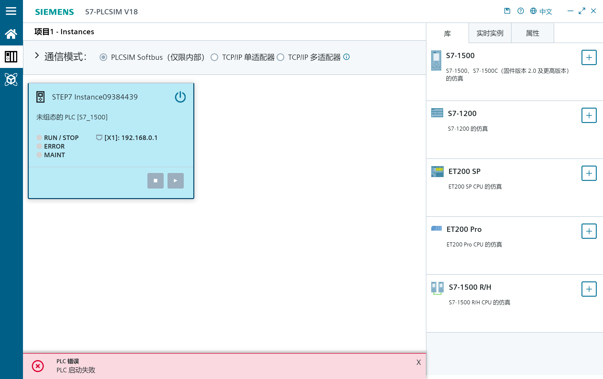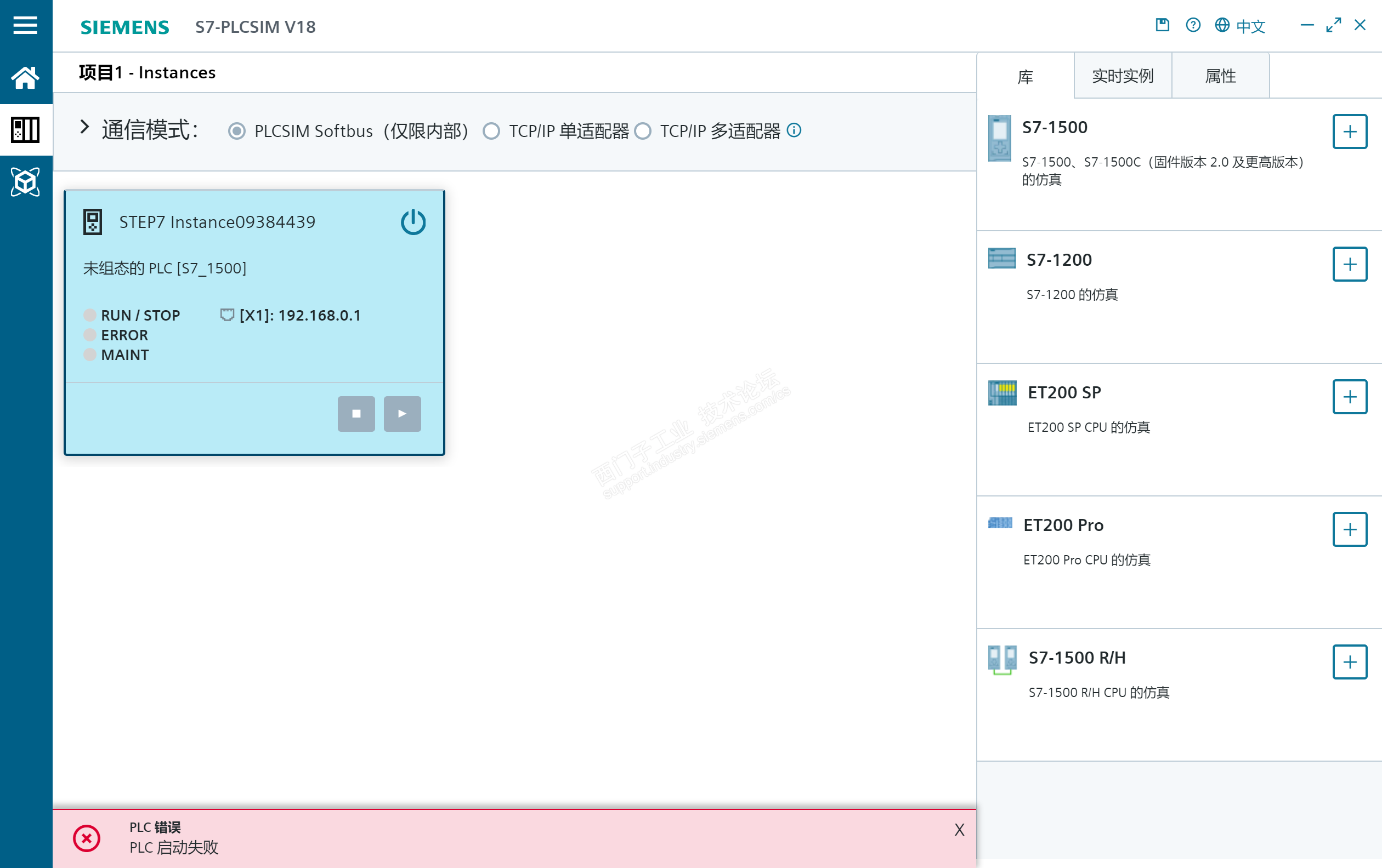 博图V18仿真,PLC错误,PLC启动失败是什么问题?如下图