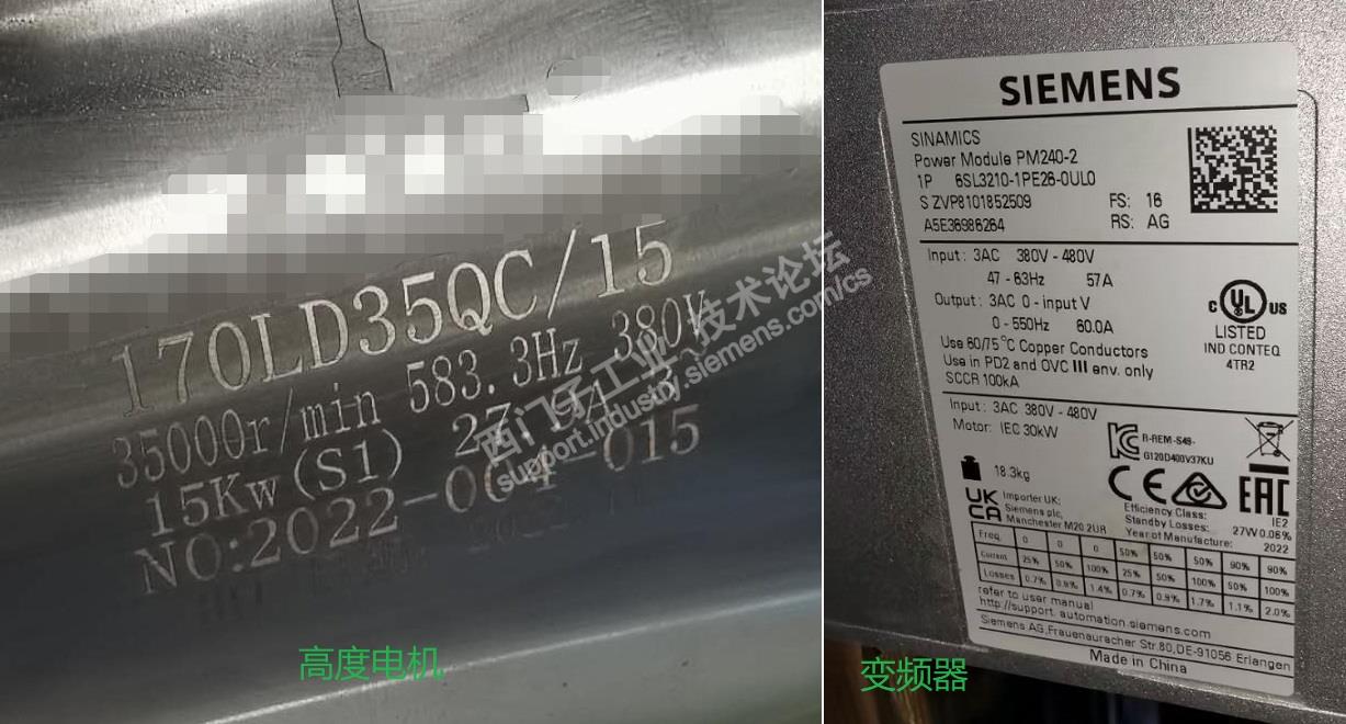 G120变频器,用于驱动高速电机:额定转速:35000r/min,额定频率:583HZ(见附件照片)