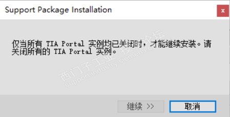 把博途关了,只保留下图所示的对话框窗口,然后再点继续,就可以安装了。