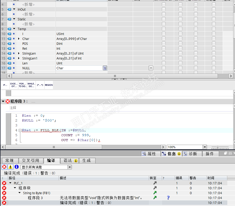想用块填充指令清空一个字符Char的数组,结果编程的时候一直报错,请教一个各位大神这是哪里出问题了