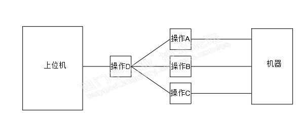 目前有个客户说他们会开发上位机来操作此机器。他们不愿按上图A、B和C的情况写程序,因为工作量太大,而是让我只提供一个D给他们,他们照D写程序,这样子工作量就小了,逻辑关系如下图: