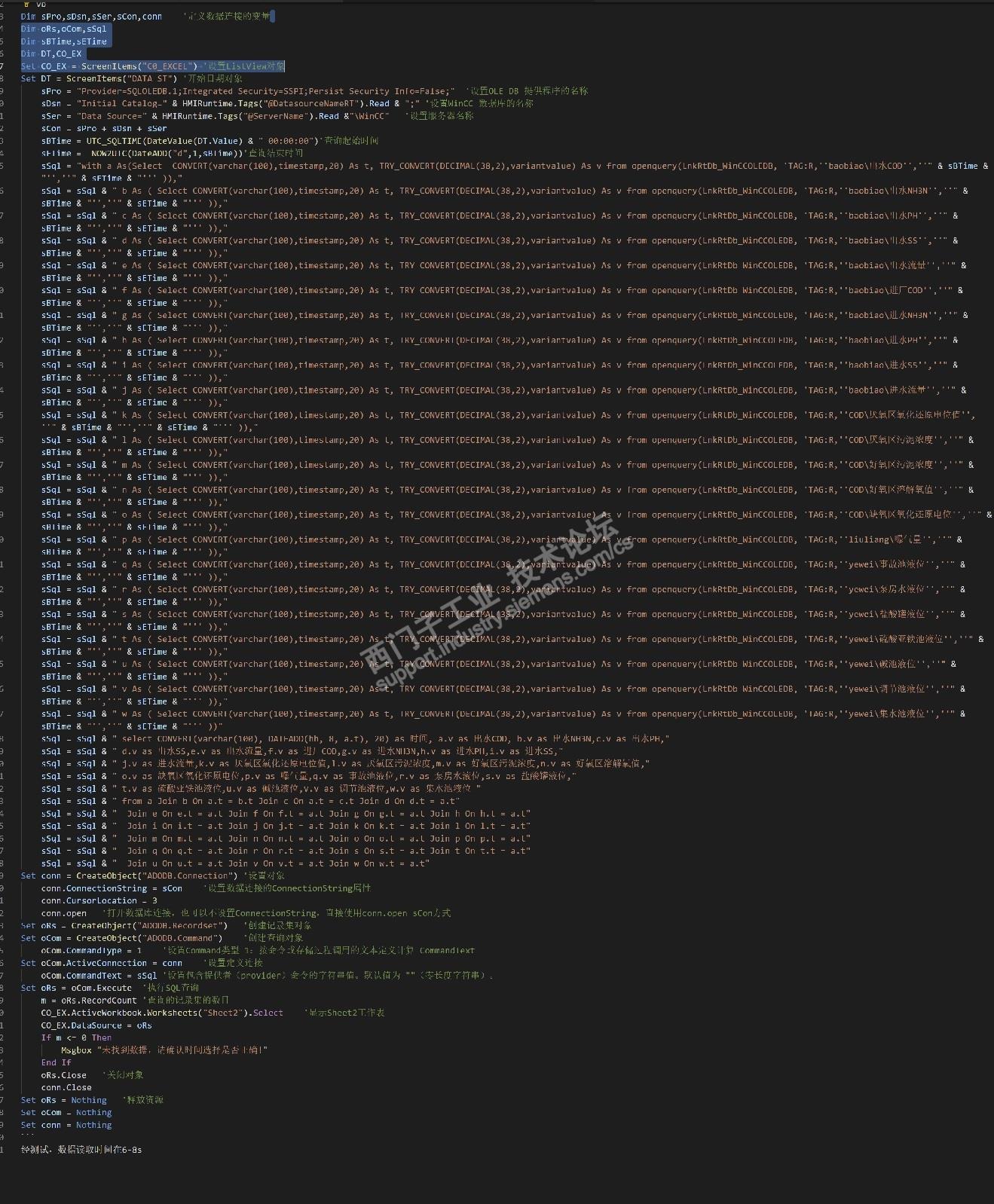 控件组态完成后,剩下的就都是脚本了,先介绍使用VBS脚本执行数据的查询,只把数据集返回到控件的表内进行显示。