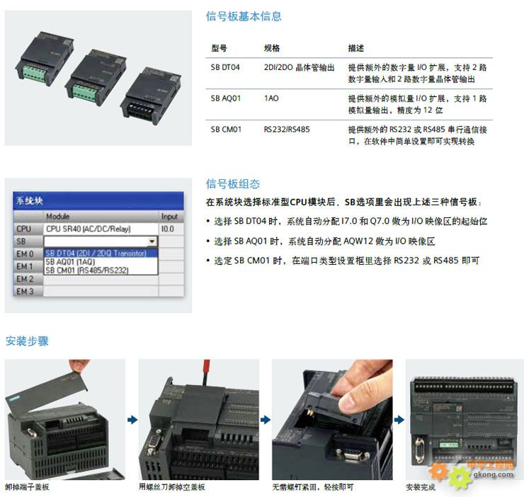 2)型号SB AQ01,提供额外的模拟量I/O扩展,支持1路模拟量输出,精度为12位