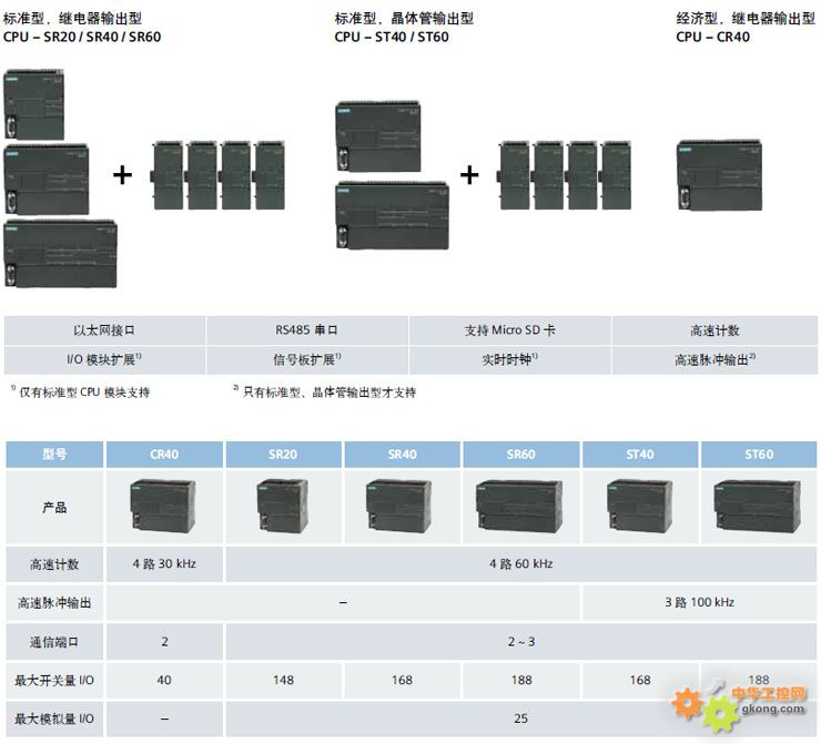 C开头的是经济型,S开头的是标准型经济型,继电器输出型:CPU – CR40