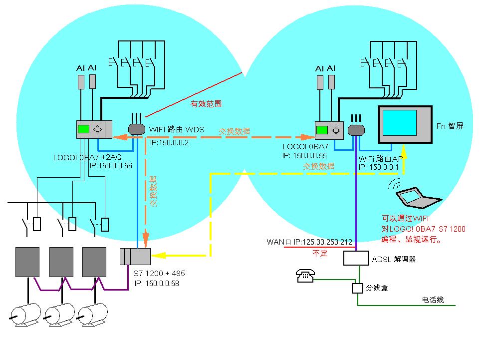 2、PLC(net)做无线连接的方法、通过桥接扩大无线接入范围。