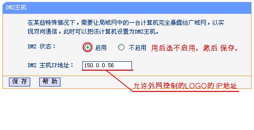 这样就可以远程连接、下载、启/停\检测LOGO了。完成后,停用DMZ功能即可。