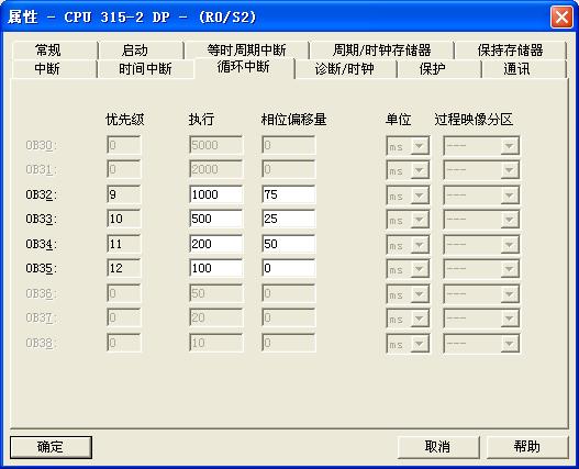 以OB35和OB34为例,它们的循环中断的周期分别为100ms和200ms,如果二者的相位偏移量为0,将会同时产生OB35和OB34的中断,在同一个扫描周期内,CPU按优先级依次调用OB35和OB34,可能导致该扫描周期的时间过长。