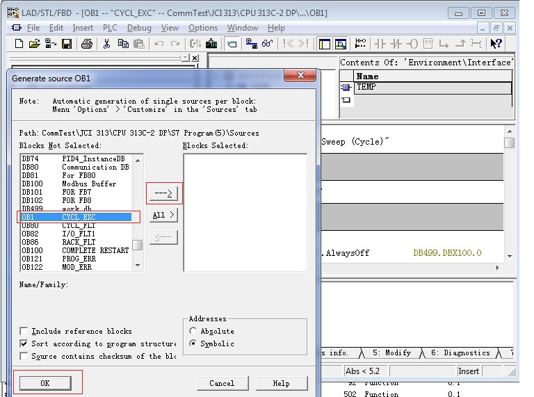 1、打开你想导出的任意块(OB,FC,FB,DB...)