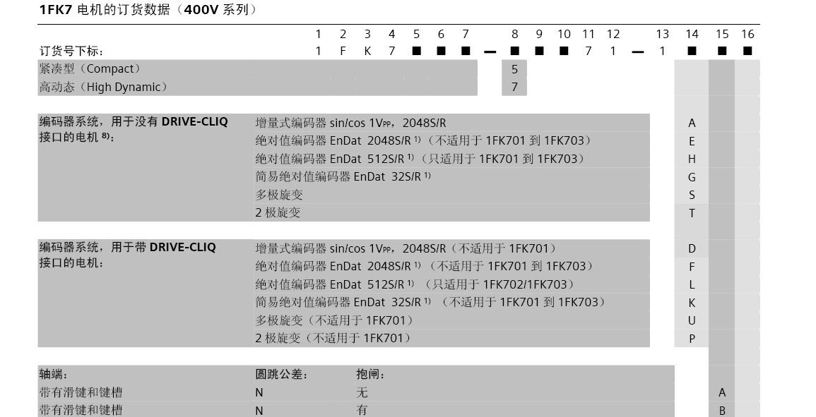 在配置1FK系列电机时有一项“Motor encoder”,这个里面的编码器类型(就是我贴的第一张图)和样本里面的型号解释的怎么不一样啊,该怎么选配啊。