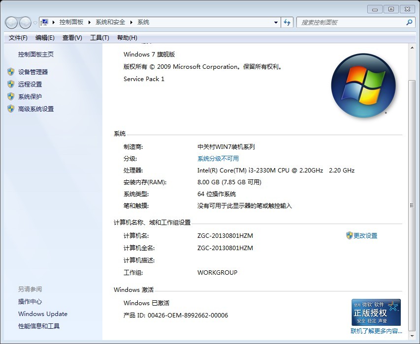 1, WIN7/64位,旗舰版