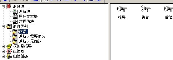 我们还可以对消息进行分类啊,消息可以人为的分成多种类别(最多16种),每种消息类别下又可以分成16种消息类型。比如系统默认的消息里面 “错误”这种消息类别就分成了报警、警告、故障三种不同紧急等级消息类型。每种类型就都可以对其进行组态选择其消息,到达,离开,已确认显示的颜色。
