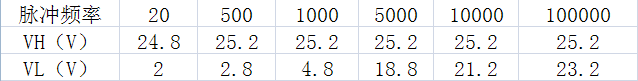测试的结果显示如上,有个新的疑问:从数据看脉冲输出的低电平是随着输出频率的升高而升高的,想知道脉冲输出的高低电平界限是多少呢??到5000以后低电平的幅值也很高了!!