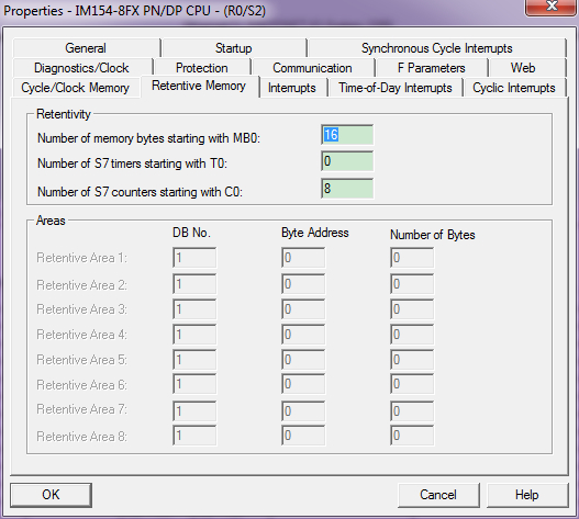 300同样也是有专门区域用作断电保存的。M存储区的掉电保存在硬件组态中,CPU属性中存储单元可以设置,默认M区的MB存储区为16字节。另外300的DB块也是断电保持的。