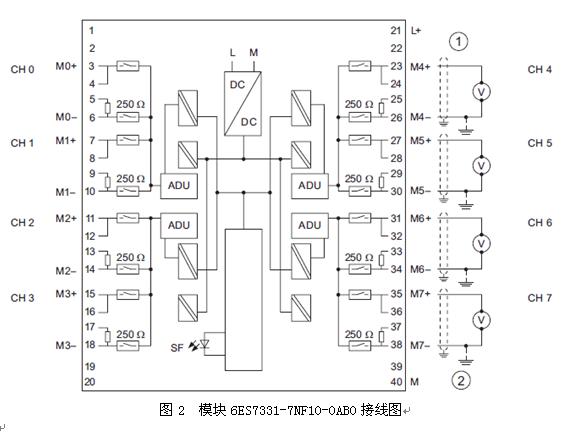 有的模块通道组间都是隔离的,没有MANA ,例如模块6ES7331-7NF10-0AB0,接线如图2所示: