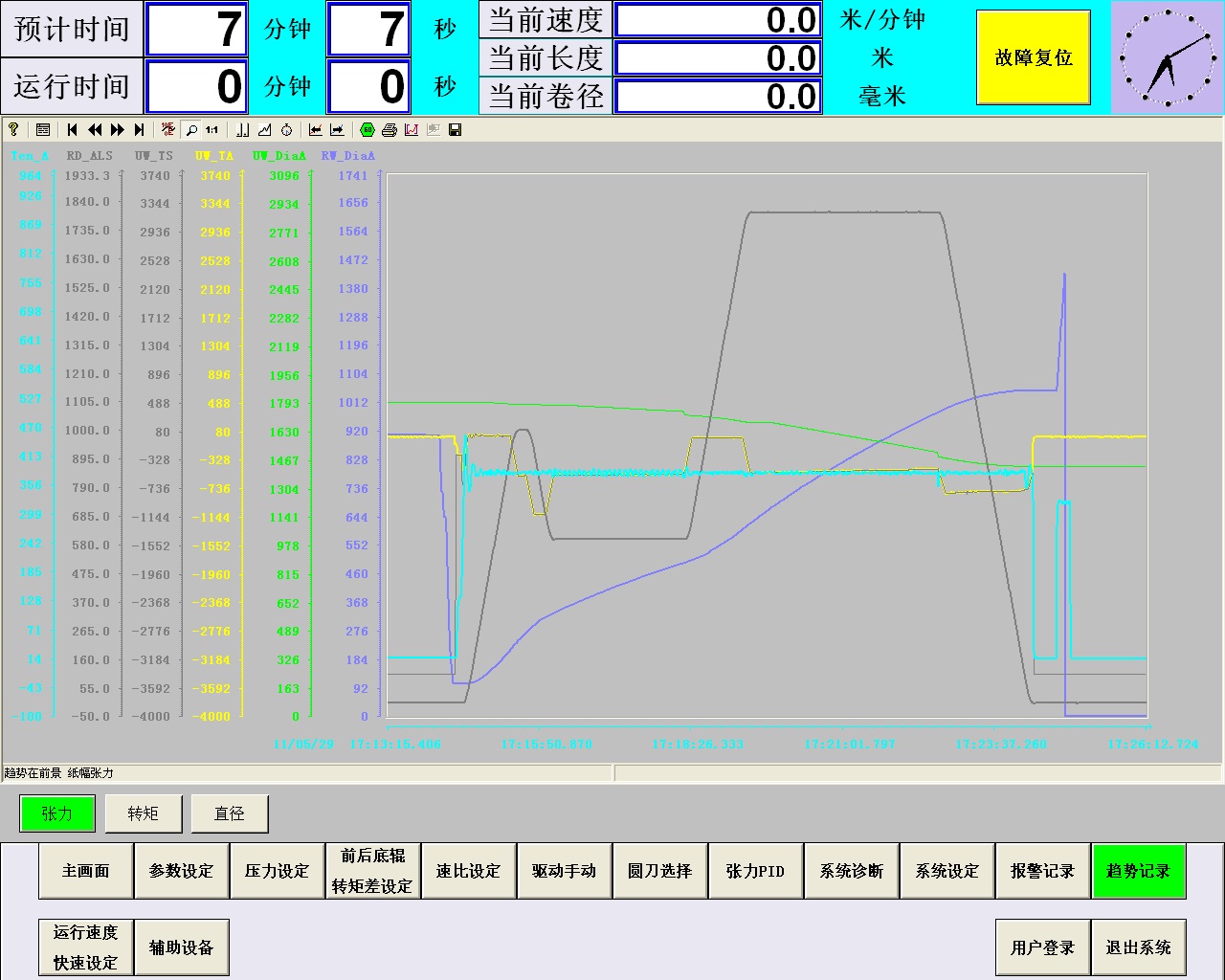 给个参考,这是一张测试复卷的截图,所以速度给定有变化,但张力是不变的
