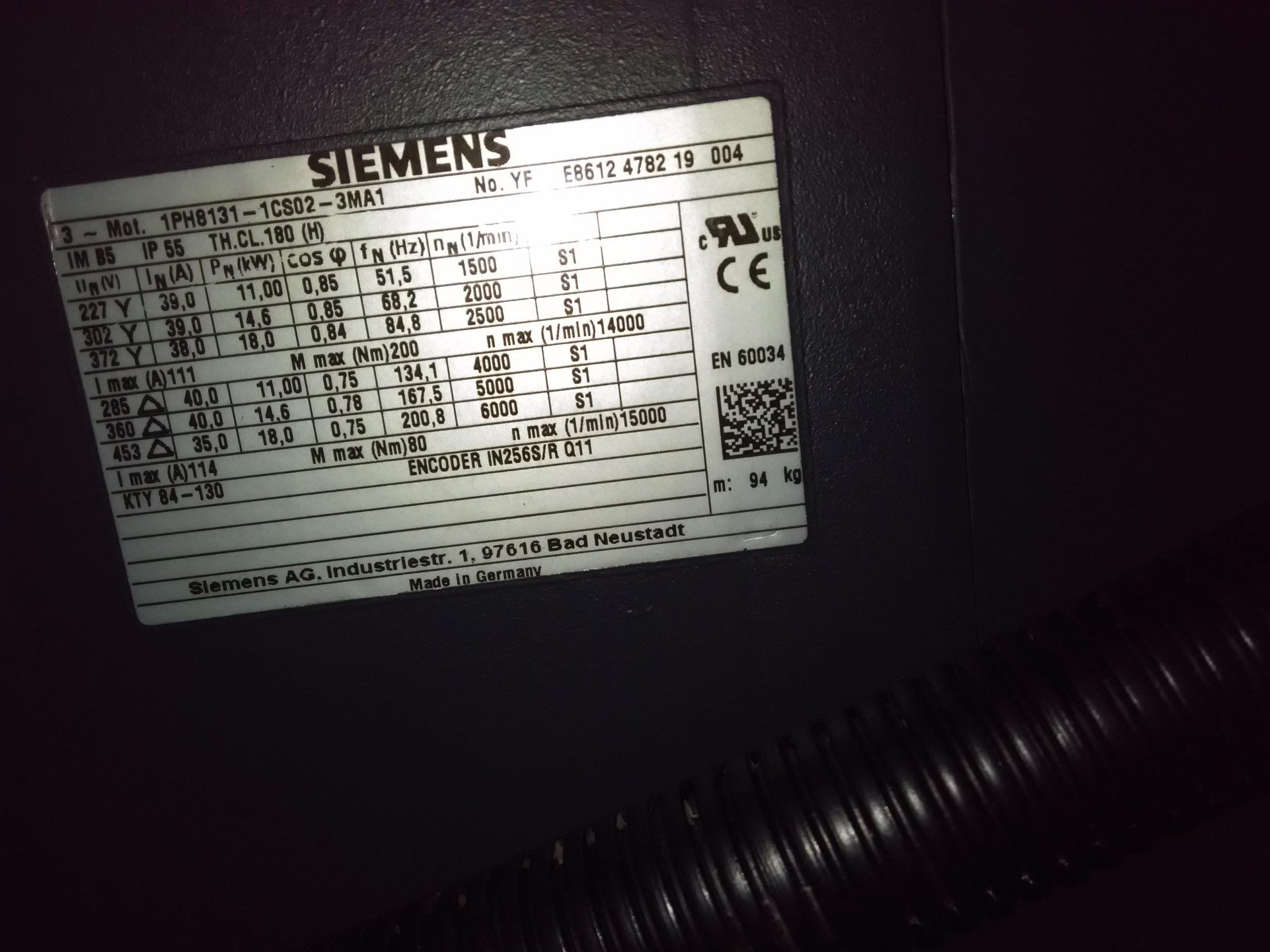 828D系统,调试伺服主轴,电机与主轴之间为1:1直连方式,电机为西门子电机(1PH8131-1CS02-3MA1,参见图片),该电机不是Drivr-CLiq,而是通过SMC20模块转换编码器信号。