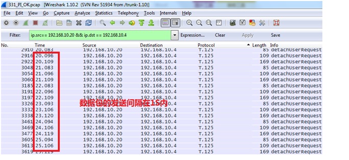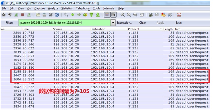 在KEPSERVER OPC服务器的出口处抓包后分析发现,断电前与断电后数据包的发送间隔会出现变化,在断电前数据包的发送间隔为1s左右,而断电后数据的发送间隔在某个时刻会变为7-10s左右,如图6和图7所示。但从这里只能说明数据包的发送出了问题,没有足够的证据能够说明是KEPSERVER OPC服务器的S7驱动的问题,而不是网络的问题。