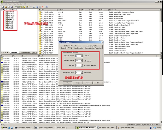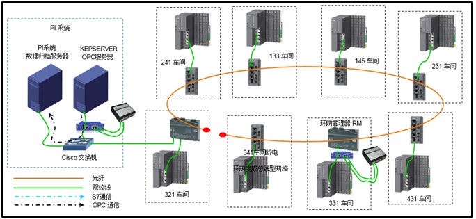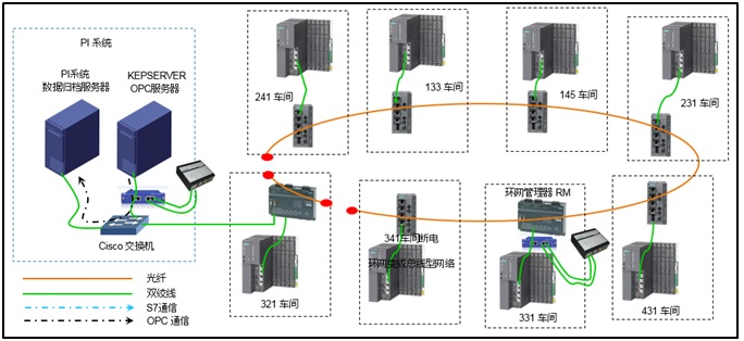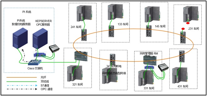 图9此时已基本确定是KEPSERVER OPC服务器的S7驱动的问题导致了故障现象。为了让客户能确认,我们又做了一个测试,环网保持正常的连接断开231车间PLC与SCALANCE X200的以太网双绞线如图10所示。断开后发现心跳检测出现了异常,在此基础上继续断开241车间PLC与SCALANCE X200的以太网双绞线,发现异常现象更为严重。