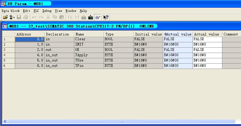 从以下DB1在线状态可以看出,FB声明参数的地址不会发生改变