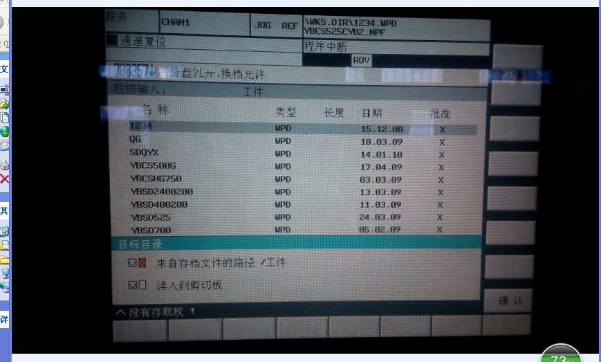 840D 用232 传输加工程序出错,不能传输。机器一侧都已经设定,数据位 停止位 端口等等,winpcin与其对应,当我保存设定,开始传输时,出现 没有存取权限。一开始我已经输入制造商密码sunrise,但是一直出现没有存取权。电脑端winpcin数据传输一直是零。钥匙各个档位我都试过了,都不行。232线也没问题,前几天在别的机器用过 不知道什么原因 望各位指点