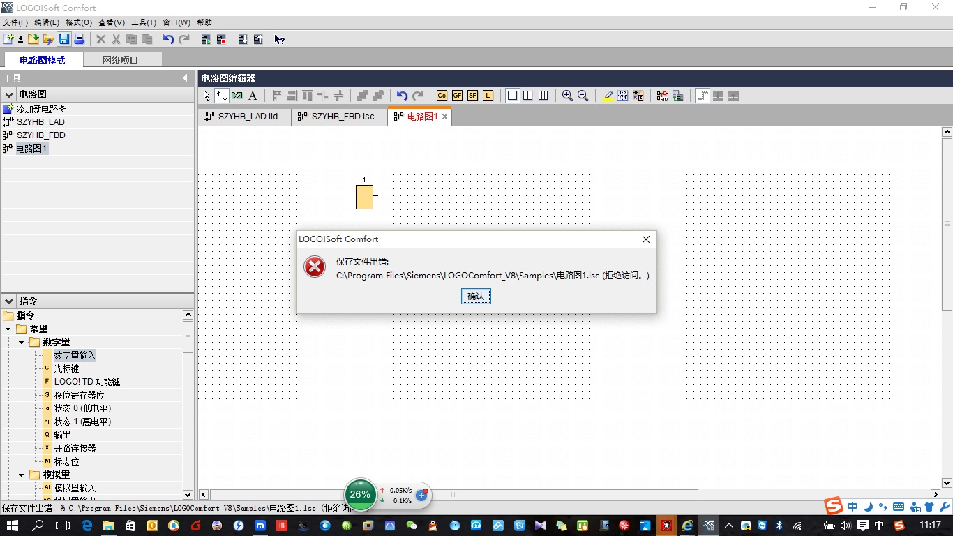 我在LOGO Soft ComfortV8下新建工程,执行保存时弹出保存出错窗口(见附件的拷屏)。我的软件是安装于win8.1系统,然后系统升级到win10。