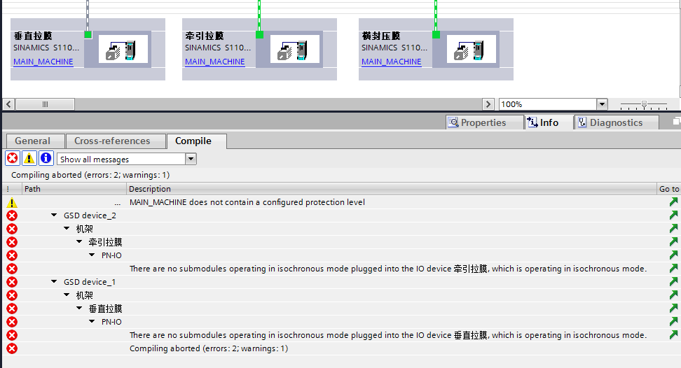 S7-1500 与S110、G120C在同一网络,组态S110 IRT之后,编译总提示缺少同步子模块。是否哪里设置有问题,还是目前不支持1500作IRT?