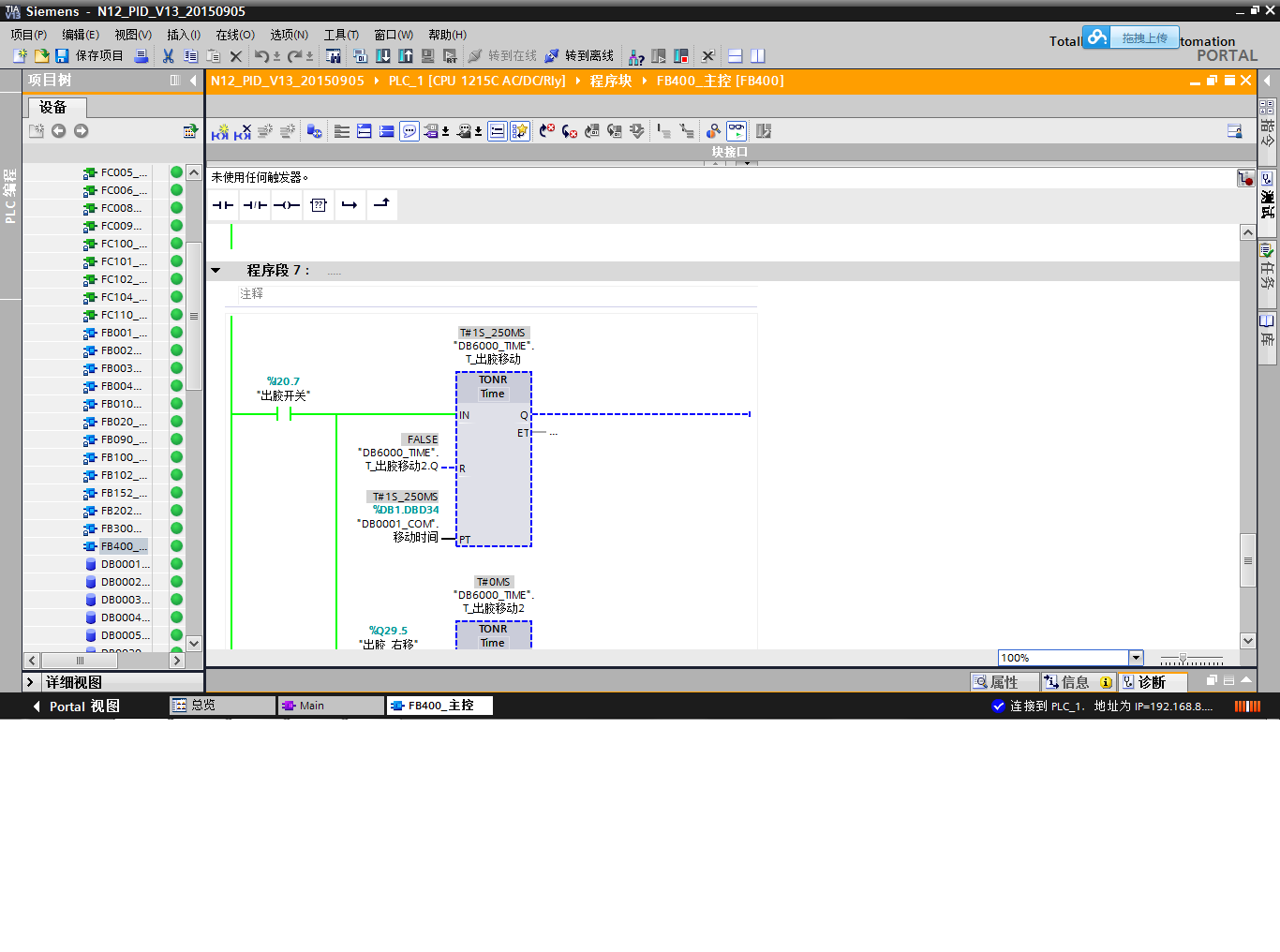 I20.7未接通时两个TONR定时器不工作,Q29.4和Q29.5输出都为OFF