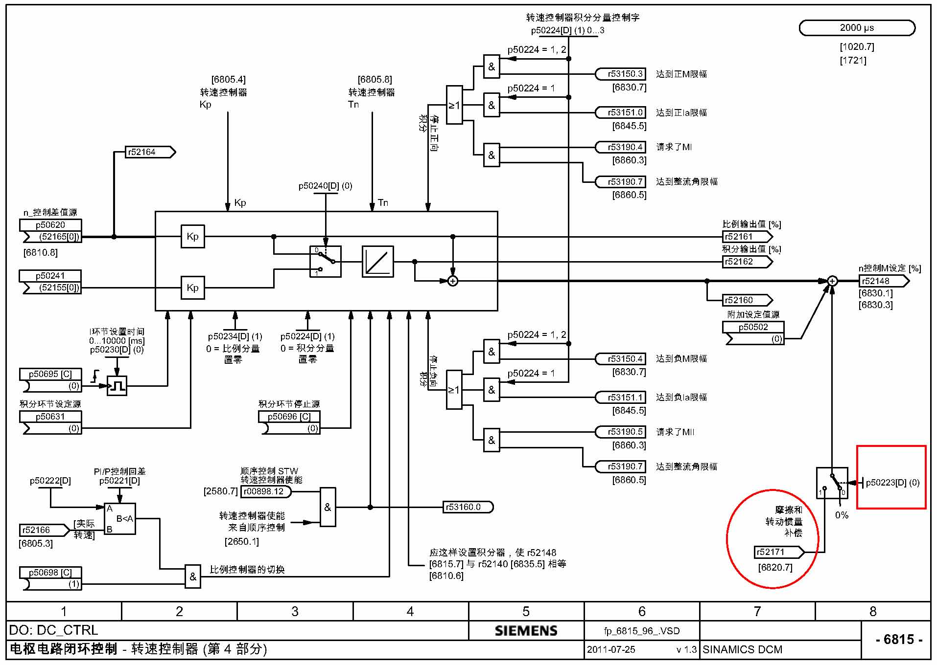 这两张图的红圈部分就是系统摩擦惯性补偿。红框部分置 1 才能有效。是这样吗?