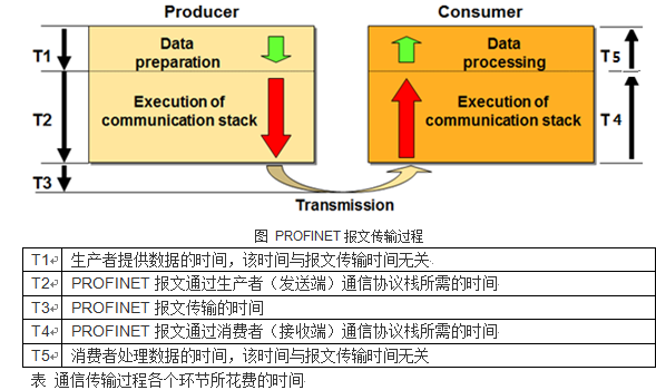 普通以太网通信使用TCP/IP协议,设备处理报文的时间是ms级别。对于PROFINET实时通信来说,PROFINET使用100Mbps(快速以太网)的传输速率,以传输一个最长的PROFINET报文1522字节为例,其传输时间T3大约是125μs,与采用TCP/IP协议报文的处理时间相比,传输时间T3是很短的。于是,要缩短刷新时间,最有效的办法就要精简通信协议栈,也就是缩短了T2和T4。