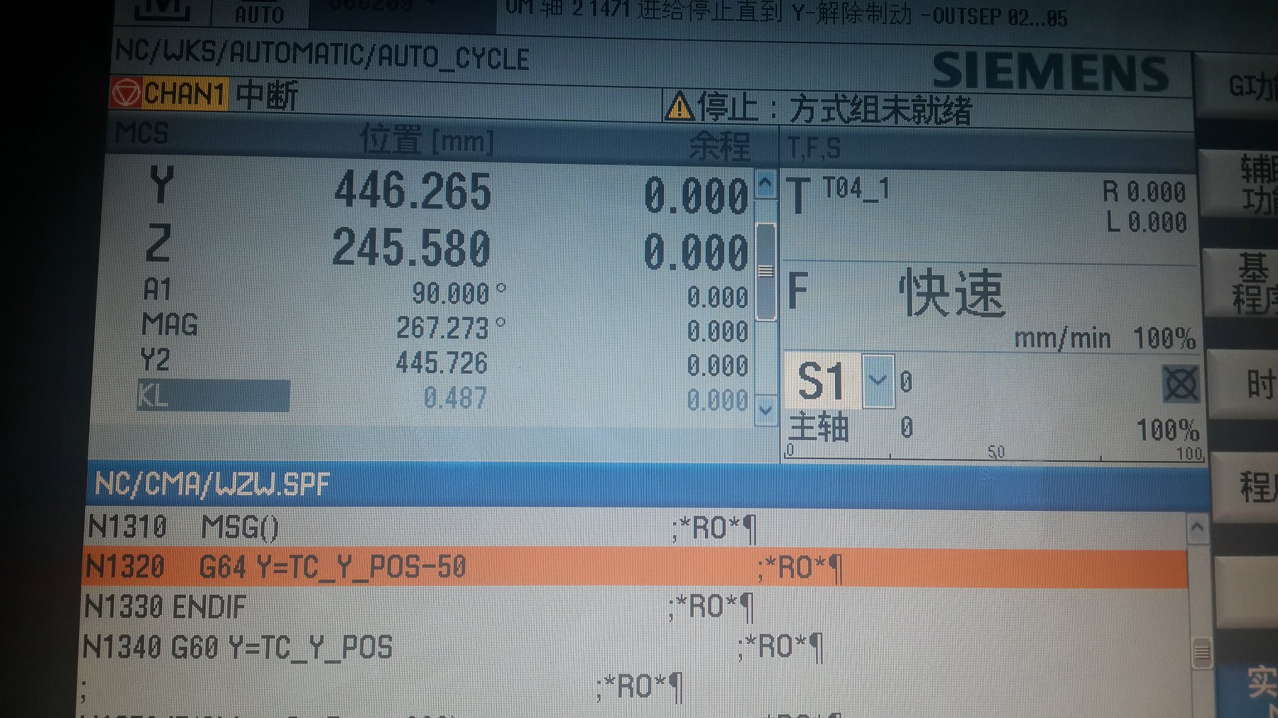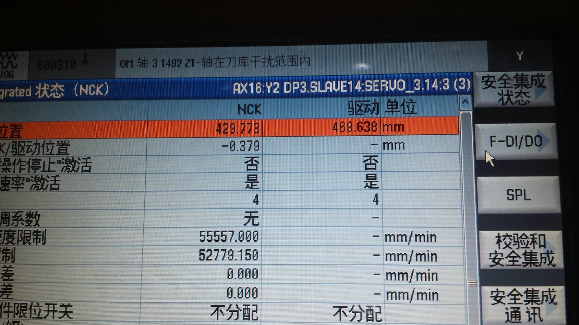 丝杠更换完成以后设备重新运转,再观察Y2轴的NCK与驱动的差值,正常值在0.05mm范围之内。